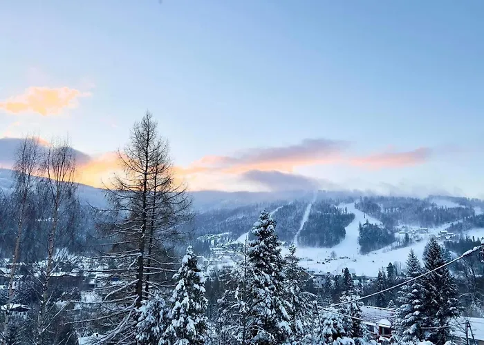 שוכן בעיר שצ'צ'ירק, הוילה Dom Na Widoku W Gorach Szczyrk זהו נכס בעל 4 חדרי שינה, כולל מרפסת עם נוף של הר. Hala Skrzyczenska-Male Skrzyczne זה כ-10 דקות נסיעה על הוילה, ועל Skalite אפשר להגיע בפחות מ-15 דקות נסיעה.